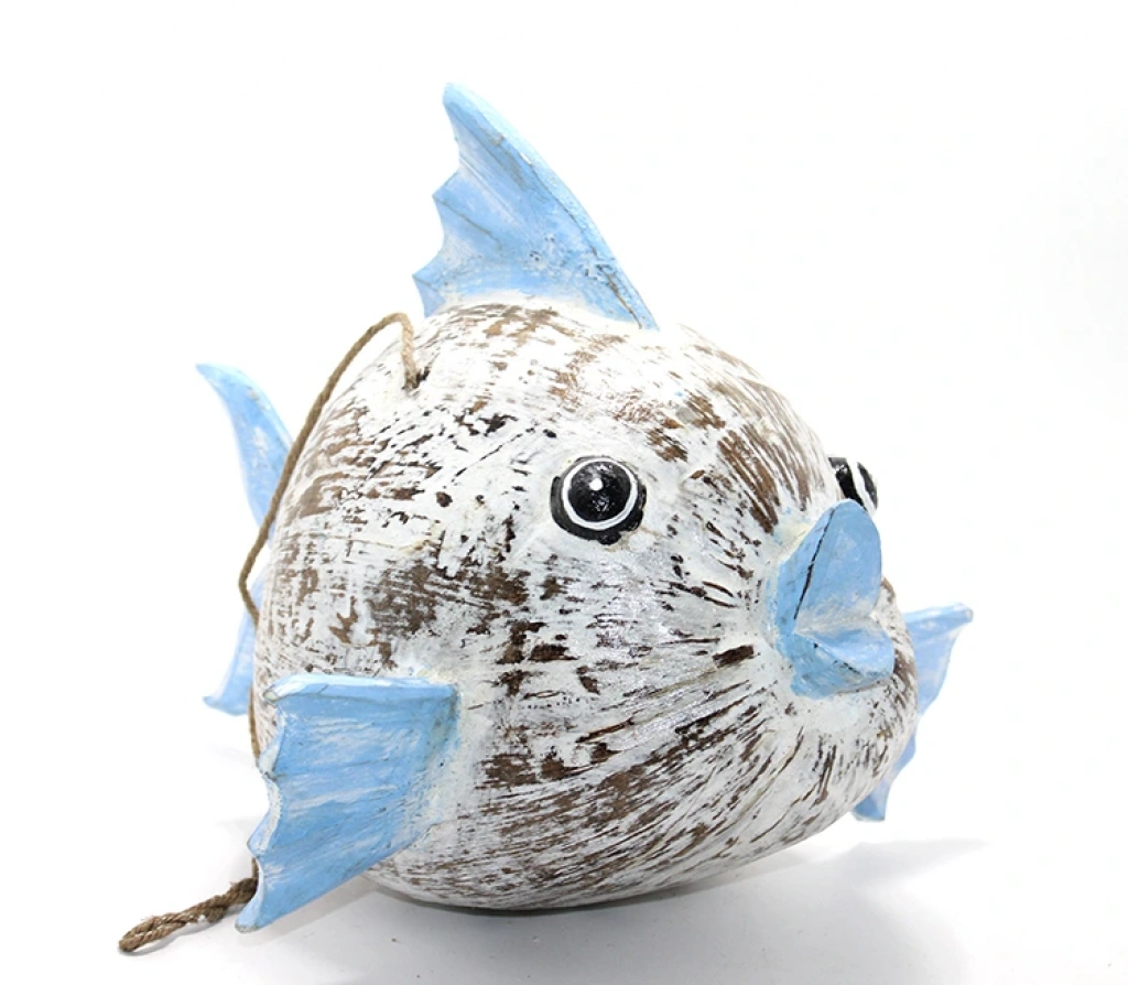 AHŞAP BALIK FİGÜRÜÜrün ÖzellikleriAhşap balık figürü, 30x28 cm boyutunda ve asılabilir özellikte şık bir dekoratif üründür. Doğal ahşap malzeme ile üretilmiş, mavi ve beyaz tonlarında işlenmiş olan bu balık figürü, deniz temalı dekorasyonlar için mükemmel bir seçenek sunar. Leyloş evde hem ofiste kullanılabilecek bu figür, rustik ve estetik bir hava yaratır. Ayrıca, rahatça asılabilir olması, dekoratif olarak çeşitli alanlarda kullanılmasını sağlar.Paket İçeriği1 Adet Ahşap Balık Figürü