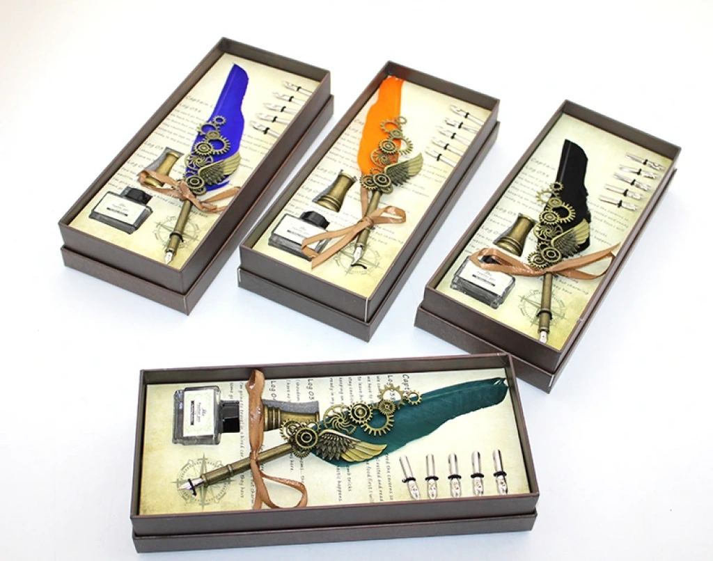 DIVIT HOKKA SETİ MODEL 5Ürün ÖzellikleriDivit Hokka Seti Model 5, renkli tasarımı ve zarif işleme detaylarıyla hem estetik hem de işlevsel bir yazı setidir. Tüy divit, dikkat çekici renkli tasarımı ve ince işçilikle süslenmiş detaylarıyla yazı yazmayı daha keyifli hale getirir. Hokka, mürekkebinizi düzenli ve şık bir şekilde saklamanıza olanak tanır. Klasik ve zarif tasarımı, bu seti dekoratif bir masa aksesuarı ve aynı zamanda özel bir hediye seçeneği haline getirir. Koleksiyon severler ve geleneksel yazı sanatlarına ilgi duyanlar için mükemmel bir seçimdir.Not: Ürün farklı renklerde mevcuttur ve Karışık gönderim yapılmaktadır.Paket İçeriği1 adet Divit Hokka Seti Model 5