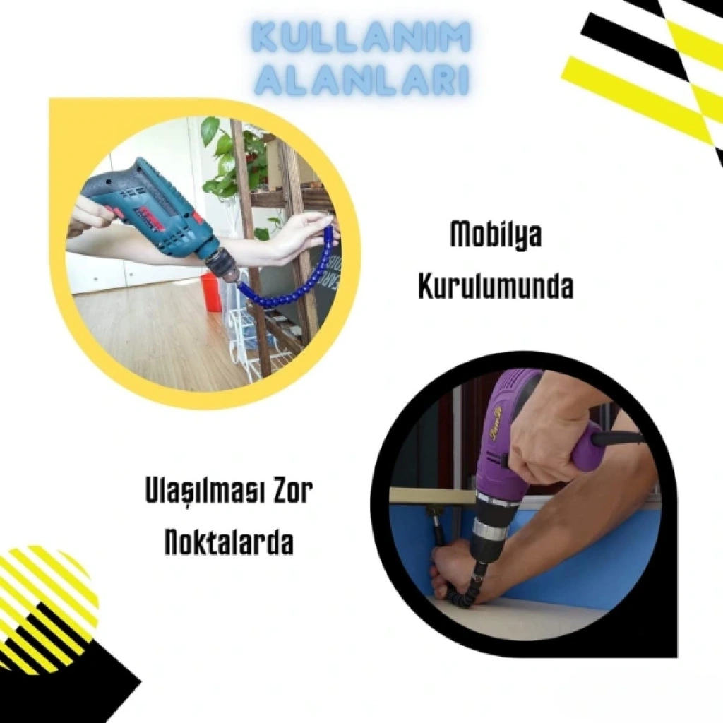 ESNEK ŞAFTLI TORNAVİDA UCU SETİÜrün ÖzellikleriEsnek şaftlı tornavida ucu seti, Phillips (Yıldız), düz uçlu, Torx (Yıldız-çentikli), Hex (Altıgen) gibi çeşitli uç tipleriyle farklı vida başlıklarına uyum sağlar. PH, H, T, SL gibi uç tipleriyle geniş bir kullanım alanı sunar. Esnek uzatma aparatı, ulaşılması zor yerlerde vidalama yapmanıza imkan tanır (örneğin mobilya köşeleri, dar alanlar gibi). Uç kısmı manyetiktir, böylece vida uçları kolayca tutturulur ve düşmez. Elektrikli matkap, vidalama makinesi veya manuel tornavida ile uyumludur. Evde tamir işleri, mobilya montajı, elektronik cihaz açma işlemleri için oldukça kullanışlıdır. Esnek şaftı 360 derece bükülebilir, bu da sert açılarda rahat çalışmanızı sağlar.Paket İçeriği1 Adet Esnek Şaftlı Tornavida Ucu Seti
