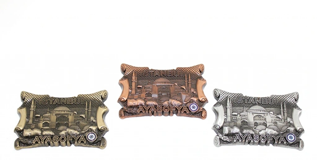 İSTANBUL YÖRESEL MAGNET MODEL 5 Ürün Özellikleriİstanbul Yöresel Magnet Model 5, İstanbul’un en ünlü simgelerinden Ayasofya'yı zarif bir şekilde sergileyen şık ve dekoratif bir üründür. Dayanıklı metal malzeme kullanılarak üretilmiş olup, uzun ömürlü kullanım sunar. Ayasofya figürü, İstanbul’un tarihi ve kültürel zenginliğini estetik bir biçimde evinize veya ofisinize taşır. Mıknatıslı özellik sayesinde, bu magnet buzdolabı veya metal yüzeylere kolayca yapışır ve her zaman kullanıma hazır olur. Leyloş dekoratif hem de anlamlı bir hediye seçeneği sunar.Paket İçeriği1 adet İstanbul Yöresel Magnet Model 5