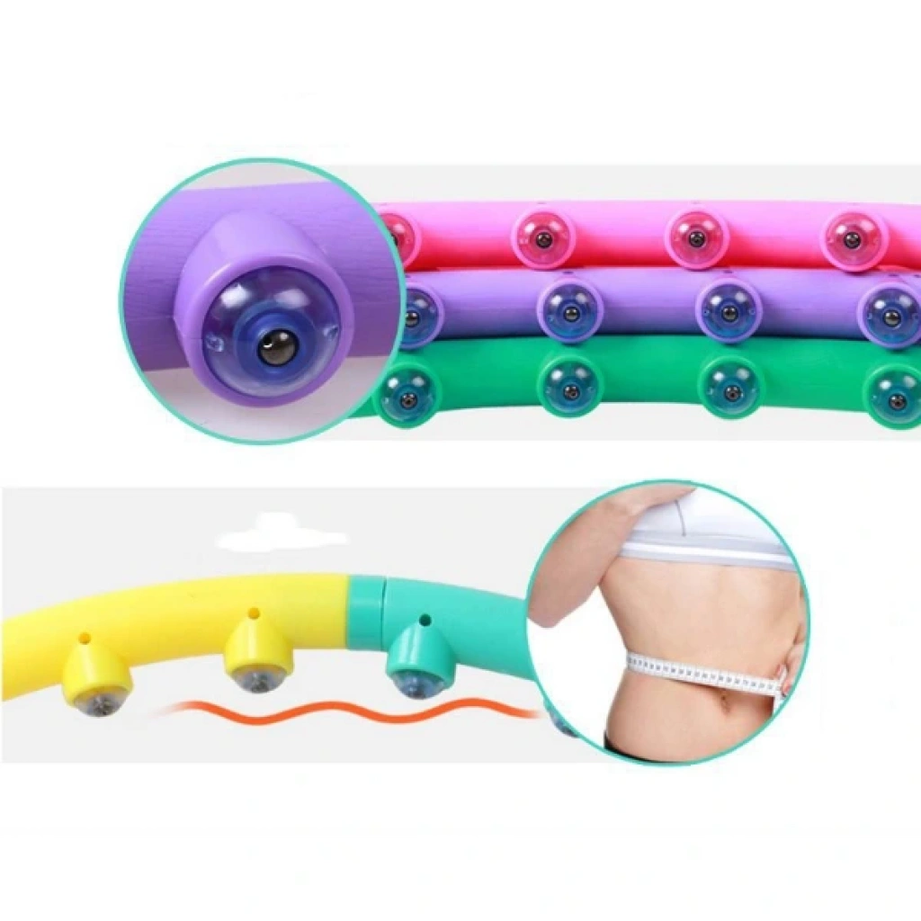 MASAJ BİLYELİ HULAHOPÜrün ÖzellikleriMasaj bilyeli hulahop, formda kalmak ve vücut şekillendirmek isteyenler için mükemmel bir egzersiz aracıdır. Düzenli kullanımda bel ve karın bölgesindeki yağların yakılmasına yardımcı olur, kasları sıkılaştırarak fit bir görünüm kazandırır. İç kısmında yer alan masaj bilyeleri, egzersiz sırasında kan dolaşımını hızlandırır ve vücuda masaj etkisi yaparak rahatlama sağlar. Renkli ve modüler tasarımı sayesinde kolayca takılıp sökülebilir, taşıması ve saklaması pratiktir. Dansla birleştirilen hulahop egzersizleri hem eğlenceli hem de yüksek kalori yakımı sağlar. Saatte 700 kaloriye kadar enerji harcatabilir. Günde 1-2 kez, 20 dakikayı geçmeyecek şekilde düzenli kullanım önerilir. Sağlam plastik yapısı uzun ömürlü kullanım sunarken 98 cm çapıyla hem başlangıç hem ileri seviye kullanıcılar için uygundur.Paket İçeriği1 adet Masaj Bilyeli Hulahop