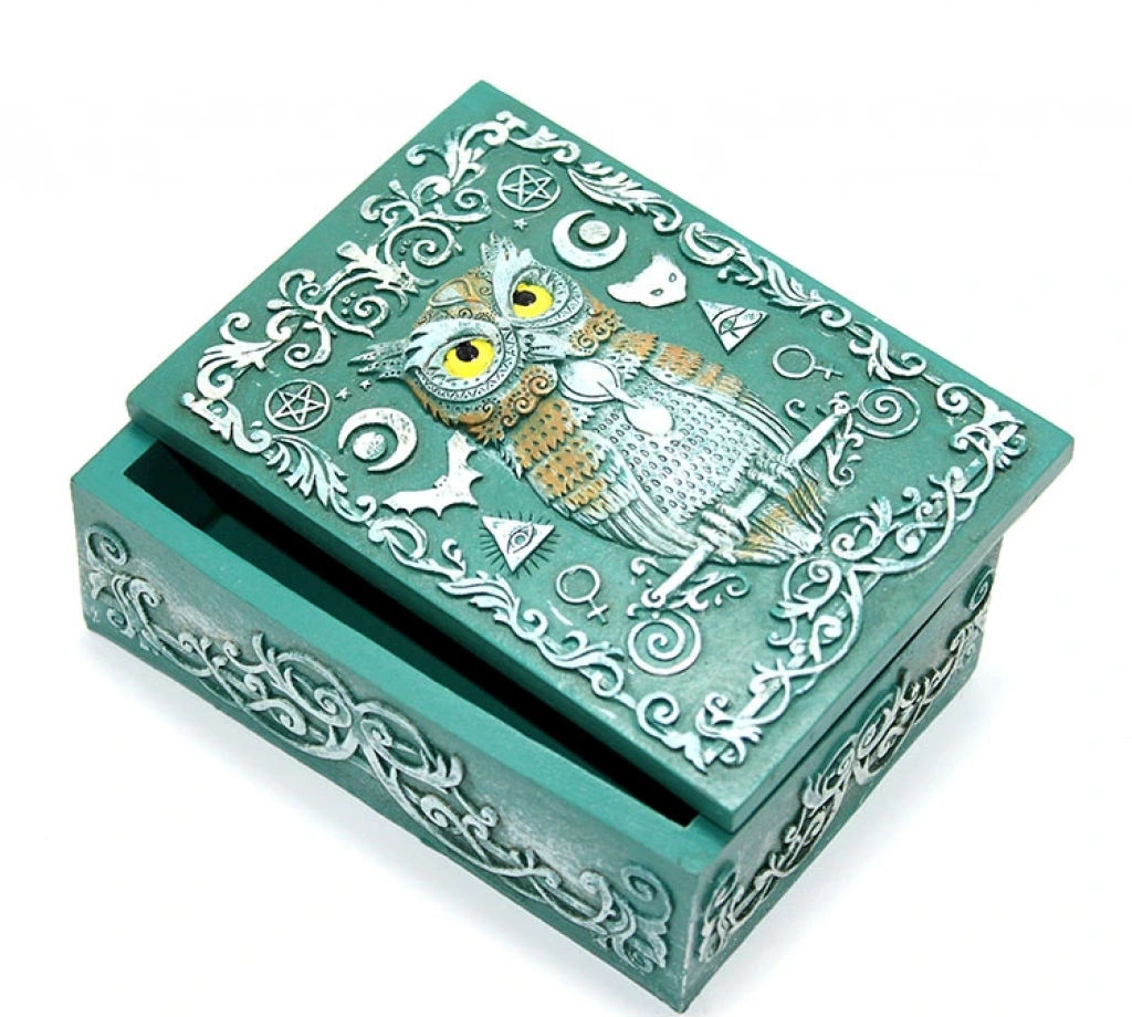 POLYESTER BAYKUŞ TASARIMI KUTUÜrün ÖzellikleriPolyester Baykuş Tasarımı Kutu, mistik ve dekoratif detaylarıyla dikkat çeken özel bir saklama kutusudur. Kapağında zarif işlemelere sahip kabartmalı baykuş figürü bulunmakta olup, büyüleyici tasarımı ile estetik bir görünüm sunar. Dayanıklı polyester malzemeden üretilmiş olup, uzun ömürlü kullanım sağlar. Takılarınızı, küçük eşyalarınızı veya değerli objelerinizi güvenle saklamak için ideal bir üründür. Aynı zamanda dekoratif bir obje olarak kullanılarak mistik bir atmosfer yaratır.Paket İçeriği1 Adet Polyester Baykuş Tasarımı Kutu