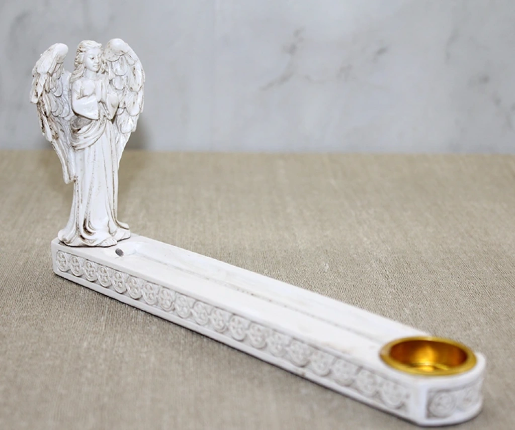 POLYESTER MELEKLİ TÜTSÜLÜKÜrün ÖzellikleriPolyester Melekli Tütsülük, zarif melek figürü ile tasarlanmış şık ve dekoratif bir tütsülük modelidir. 24 cm boyutundaki uzun formu sayesinde tütsü çubuklarını güvenli biçimde taşırken aynı zamanda kullanıldığı ortama estetik bir görünüm kazandırır. Melek figürünün detaylı işçiliği ürüne zarafet katar ve bulunduğu alanda huzurlu bir atmosfer oluşturur. Polyester malzeme yapısı sayesinde dayanıklı, hafif ve uzun ömürlüdür. Leyloş günlük tütsü kullanımında hem de dekoratif amaçla vitrinlerde, masa üstlerinde ve meditasyon köşelerinde tercih edilebilecek özel bir tasarımdır. Manevi temalı objeleri sevenler veya şık bir hediye arayanlar için ideal bir seçimdir.Paket İçeriği1 adet Polyester Melekli Tütsülük