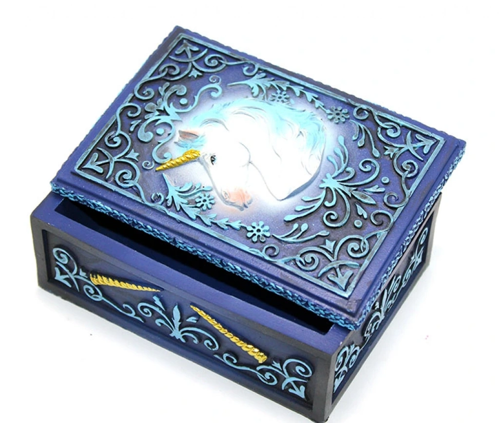 POLYESTER UNICORN KUTUÜrün ÖzellikleriPolyester Unicorn Kutu, mistik ve büyüleyici tasarımıyla dikkat çeken özel bir saklama kutusudur. Üzerindeki detaylı unicorn figürü ve kabartmalı süslemeleri ile dekoratif bir obje olarak da kullanılabilir. Kaliteli polyester malzemeden üretilmiş olup, dayanıklı ve uzun ömürlüdür. Takı, küçük eşyalar veya özel eşyalarınızı saklamak için ideal bir seçimdir. Canlı renkleri ve zarif detaylarıyla çocuk odalarından oturma odalarına kadar her ortamda şık bir görünüm sunar.Paket İçeriği1 Adet Polyester Unicorn Kutu