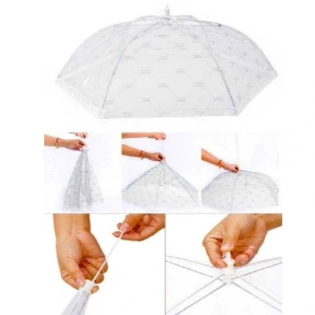YEMEK KORUMA ŞEMSİYESİÜrün ÖzellikleriYemek koruma şemsiyesi, 60 cm çapında ve 25 cm yüksekliğinde, yemeklerinizi dış etkenlerden korumak için tasarlanmıştır. Özellikle açık alanlarda veya pikniklerde yemeklerinizi toz, böcek ve diğer yabancı maddelerden korur. Şeffaf tül malzeme sayesinde içeriyi net bir şekilde görebilirsiniz. Katlanabilir yapısı ile kolayca taşıyabilir ve saklayabilirsiniz. Hijyenik bir kullanım sağlayarak yemeklerinizi güvenle korur. Çeşitli dış mekan etkinliklerinde kullanıma uygundur.Paket İçeriği1 Adet Yemek Koruma Şemsiyesi